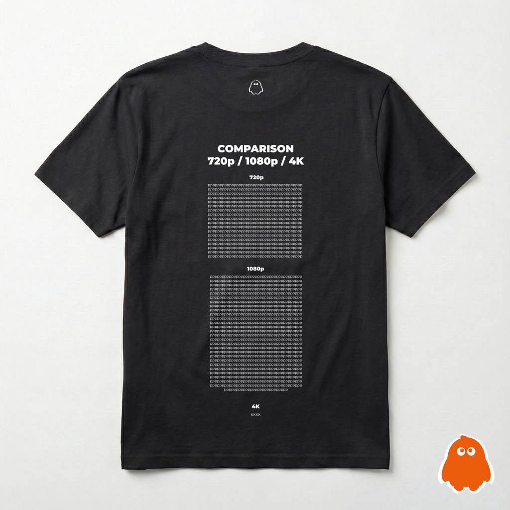 È il capo d'abbigliamento definitivo per sviluppatori, videemaker e per chiunque ami prendere la vita (e la tecnologia) rigorosamente alla lettera. Indossala e guarda la gente avvicinarsi strizzando gli occhi per leggere, regalandoti così la soddisfazione di essere la persona più "definita" della stanza.